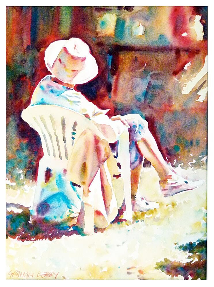 This is the painting that I did on Day 1 of my second 3 Day workshop in Syracuse, NY, USA. just 3 colours: Quinacridone Gold, Permanent Alizarin Crimson and Cerulean Blue. |