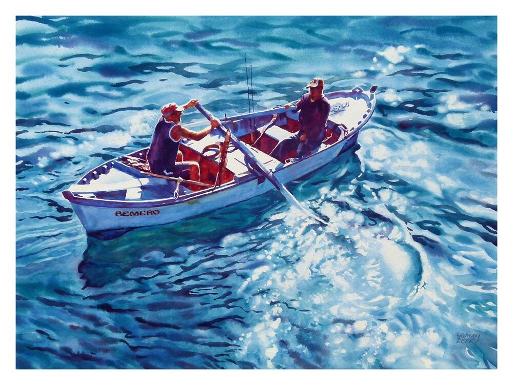 Two guys going for a days fishing, heading out of Puerto de la Cruz harbour, Tenerife. |
