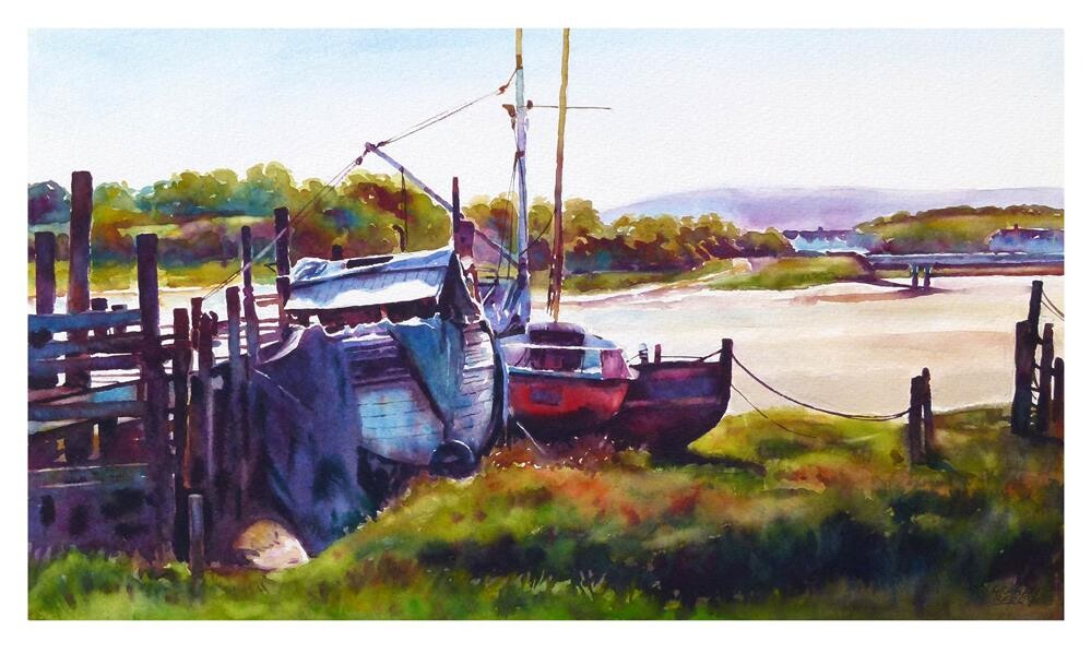 The tributary known as Skippool Creek has spawned an encampment of rickety jetties and boats that seem to have taken root. |