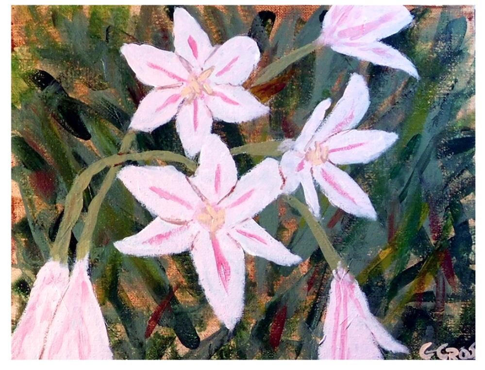 Titled "Crinum Lilies" it was created by me, Gregory Cross, on March 18, 2019 using Golden heavy body acrylics on a 8 inches tall x 10 inches wide Fredrix Pro series linen over wood panel. T I ship paintings through the US Postal Service using Priority Mail with the US. And I normally ship it the next business day after receiving the order though sometimes it takes two. Please be sure to check my Ebay store for more of my paintings. Titled "Crinum Lilies" it was created by me, Gregory Cross, on March 18, 2019 using Golden heavy body acrylics on a 8 inches tall x 10 inches wide Fredrix Pro series linen over wood panel. T I ship paintings through the US Postal Service using Priority Mail with the US. And I normally ship it the next business day after receiving the order though sometimes it takes two. Please be sure to check my Ebay store for more of my paintings. |