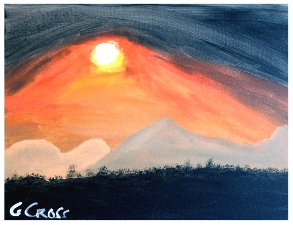 Evil Sunrise is one of the informal orange sky series paintings I did in 2019. Most of them, like this one, dealt with a interesting atmospheric effect taking place at sunrise or sunset. This is titled "Evil Sunrise" and it was painted by me, Gregory Cross, on January 12, 2019 using Golden heavy body acrylics on a US Art Supply Liberty series canvas panel. It has been varnished with Golden water based satin varnish. I ship a painting through the US Postal Service using Priority Mail within a business day of purchase but please allow me 2 days in case of unforeseen delays. Thank you for taking the time to view my painting and read this description. Evil Sunrise is one of the informal orange sky series paintings I did in 2019. Most of them, like this one, dealt with a interesting atmospheric effect taking place at sunrise or sunset. This is titled "Evil Sunrise" and it was painted by me, Gregory Cross, on January 12, 2019 using Golden heavy body acrylics on a US Art Supply Liberty series canvas panel. It has been varnished with Golden water based satin varnish. I ship a painting through the US Postal Service using Priority Mail within a business day of purchase but please allow me 2 days in case of unforeseen delays. Thank you for taking the time to view my painting and read this description. |