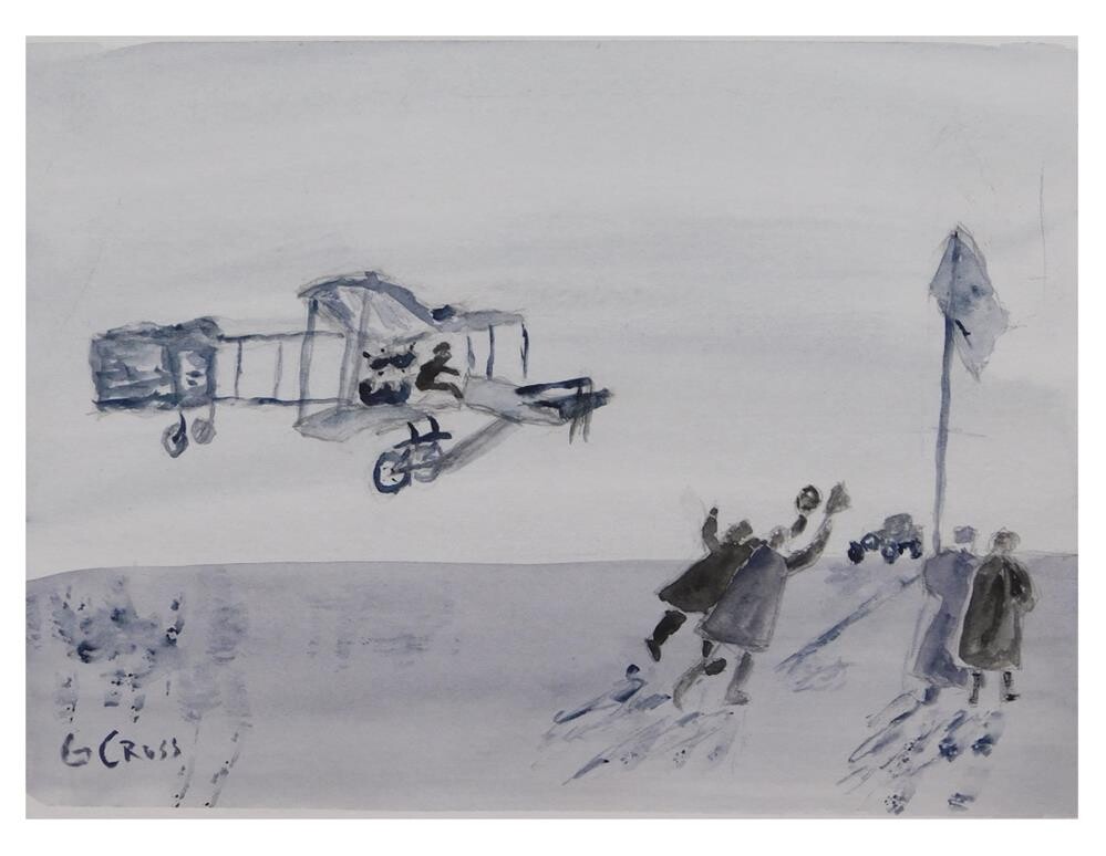 Longest Flight 1908 - 9 inches tall x 12 inches wide. This is the first of a series of early aircraft paintings based on historical images. Painted with Daniel Smith Extra Fine watercolors on Strathmore Vision series 140 lb cold press paper. This monochomatic flying machine watercolor depicts Henry Farman's record setting flight in 1908. The painting is signed G Cross on the front and has his full signature, painting number, and the date it was painted on the back. This is being offered unframed and unmatted. Shipping via US Postal Service Priority Mail only to the United States and is paid by me. Longest Flight 1908 - 9 inches tall x 12 inches wide. This is the first of a series of early aircraft paintings based on historical images. Painted with Daniel Smith Extra Fine watercolors on Strathmore Vision series 140 lb cold press paper. This monochomatic flying machine watercolor depicts Henry Farman's record setting flight in 1908. The painting is signed G Cross on the front and has his full signature, painting number, and the date it was painted on the back. This is being offered unframed and unmatted. Shipping via US Postal Service Priority Mail only to the United States and is paid by me. |