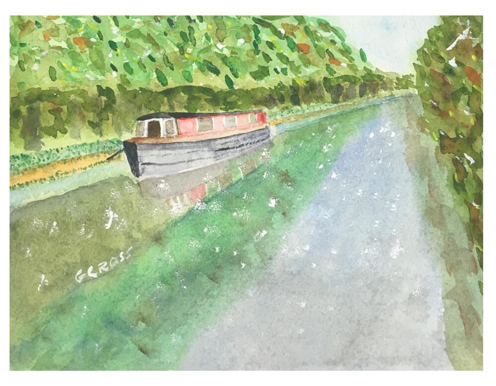 This is a watercolor of a narrowboat moored on the Grand Canal near London, England. It is unframed. This auction is for just the painting itself. Painted November 23, 2021 with Daniel Smith Extra Fine watercolors on a 9 inches tall x 12 inches wide, 140 lb sheet of Fabriano cold pressed watercolor paper. The painting is signed G. Cross and has my full signature, painting information, and my contact information on the back. This is a watercolor of a narrowboat moored on the Grand Canal near London, England. It is unframed. This auction is for just the painting itself. Painted November 23, 2021 with Daniel Smith Extra Fine watercolors on a 9 inches tall x 12 inches wide, 140 lb sheet of Fabriano cold pressed watercolor paper. The painting is signed G. Cross and has my full signature, painting information, and my contact information on the back. |