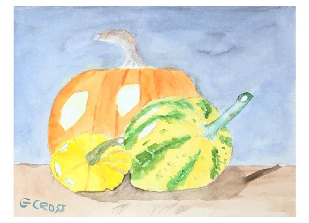 Unframed pumpkin still life watercolor is actually my most recent still life. Between Halloween and Thanksgiving 2020 I painted several still lives of pumpkins, peppers, and squash. This was the last of that short still life spree. I have been painting mostly landscapes since. Unframed pumpkin still life watercolor is actually my most recent still life. Between Halloween and Thanksgiving 2020 I painted several still lives of pumpkins, peppers, and squash. This was the last of that short still life spree. I have been painting mostly landscapes since. |