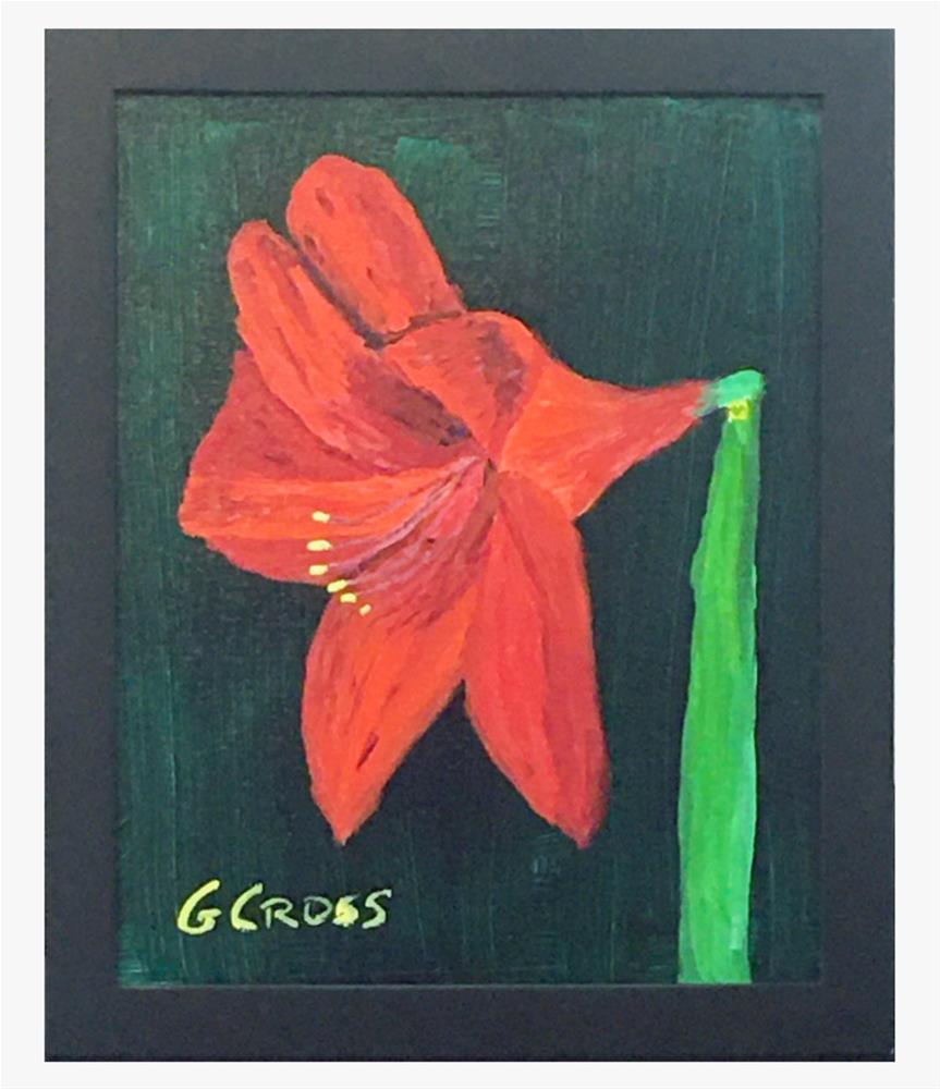 Red Amaryllis on dark green is a framed acrylic floral painting. The single flower against a dark background is a recurring theme in my art. I like to paint a single flower with a very dark, contrasting color for the background. The title of this work is "Red Amaryllis" and it is an original painting created by me, Gregory Cross, on May 1, 2021. Painted with Golden heavy body acrylics on a 10 inches tall x 8 inches wide Centurion LX linen over wood panel. It is framed with a black wood Ambiance gallery frame. The dimensions of the frame are 11.25 inches tall x 9.25 inches wide x 1.5 inches deep. The painting is signed G. Cross on the front and has my signature, contact information, title, date painted and painting number on the back. Usually ships via the USPS within 1 to 2 business days after your purchase. Though I try very hard to get the colors in the photos as close to the actual painting as I can, they may still be slightly different from the physical painting. Digital cameras don't pick up certain colors very well and often change the look of a painting slightly. So, understand that the photos are edited. I am so happy you took the time to view this painting and read the description. View my other artwork on Etsy at https://www.etsy.com/shop/GregoryCrossArtRoam Red Amaryllis on dark green is a framed acrylic floral painting. The single flower against a dark background is a recurring theme in my art. I like to paint a single flower with a very dark, contrasting color for the background. The title of this work is "Red Amaryllis" and it is an original painting created by me, Gregory Cross, on May 1, 2021. Painted with Golden heavy body acrylics on a 10 inches tall x 8 inches wide Centurion LX linen over wood panel. It is framed with a black wood Ambiance gallery frame. The dimensions of the frame are 11.25 inches tall x 9.25 inches wide x 1.5 inches deep. The painting is signed G. Cross on the front and has my signature, contact information, title, date painted and painting number on the back. Usually ships via the USPS within 1 to 2 business days after your purchase. Though I try very hard to get the colors in the photos as close to the actual painting as I can, they may still be slightly different from the physical painting. Digital cameras don't pick up certain colors very well and often change the look of a painting slightly. So, understand that the photos are edited. I am so happy you took the time to view this painting and read the description. View my other artwork on Etsy at https://www.etsy.com/shop/GregoryCrossArtRoam |