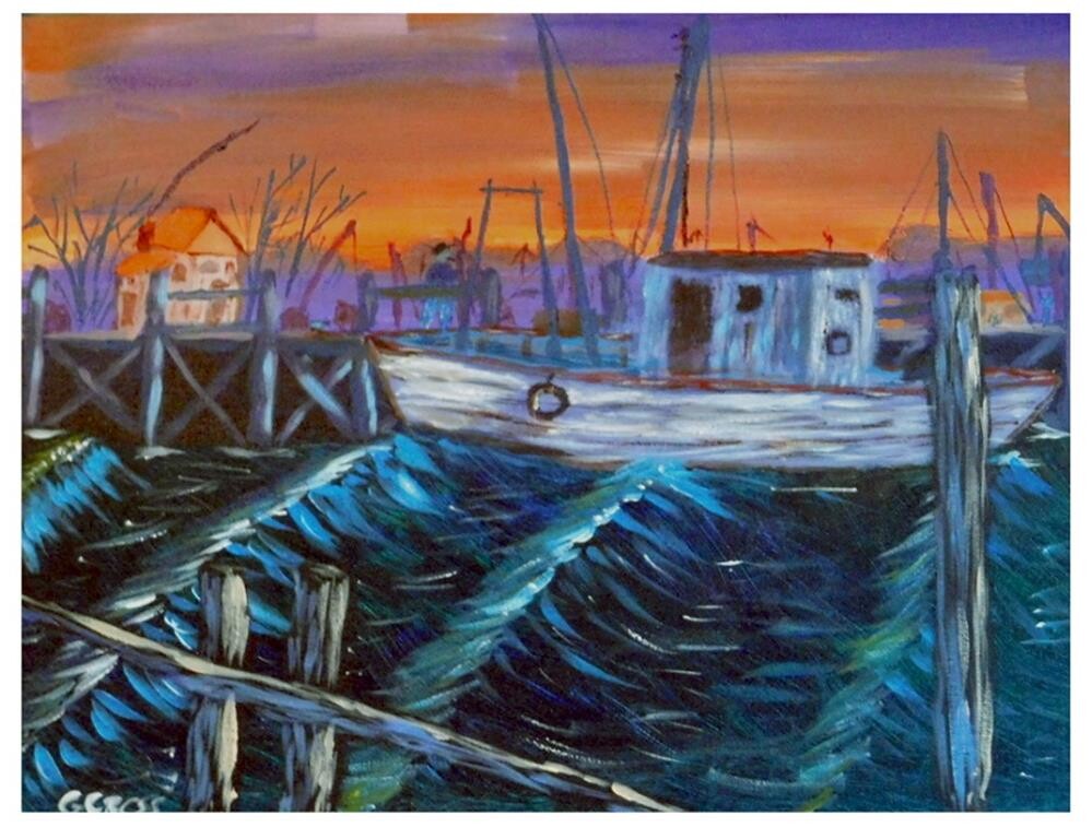 Title: Shrimp Boat. It was painted with Golden heavy body acrylics on a 11 inches tall x 14 inches wide US Art Supply Liberty series canvas panel, The painting was varnished with Golden satin finish water based varnish. The painting is an original creation of Gregory Cross. I painted it on December 21, 2018. Though I try very hard to get the colors in the photos as close to the actual painting as I can, they may still be slightly different from the physical painting. Digital cameras don't pick up certain colors very well at all and often change the look of a painting. So, understand that the photos are edited. Title: Shrimp Boat. It was painted with Golden heavy body acrylics on a 11 inches tall x 14 inches wide US Art Supply Liberty series canvas panel, The painting was varnished with Golden satin finish water based varnish. The painting is an original creation of Gregory Cross. I painted it on December 21, 2018. Though I try very hard to get the colors in the photos as close to the actual painting as I can, they may still be slightly different from the physical painting. Digital cameras don't pick up certain colors very well at all and often change the look of a painting. So, understand that the photos are edited. |
