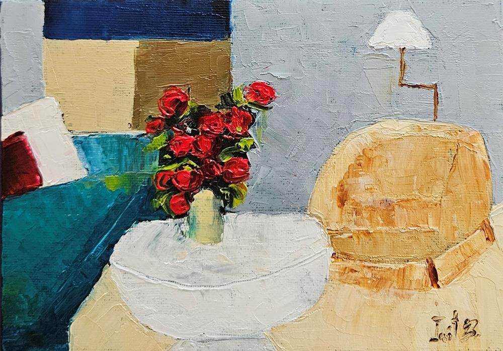 Original oil/pallet knife on 5x7 canvas panel. With small display easel. The colors may slightly vary due to a digital camera's result and depending on your monitor. Original oil/pallet knife on 5x7 canvas panel. With small display easel. The colors may slightly vary due to a digital camera's result and depending on your monitor. |