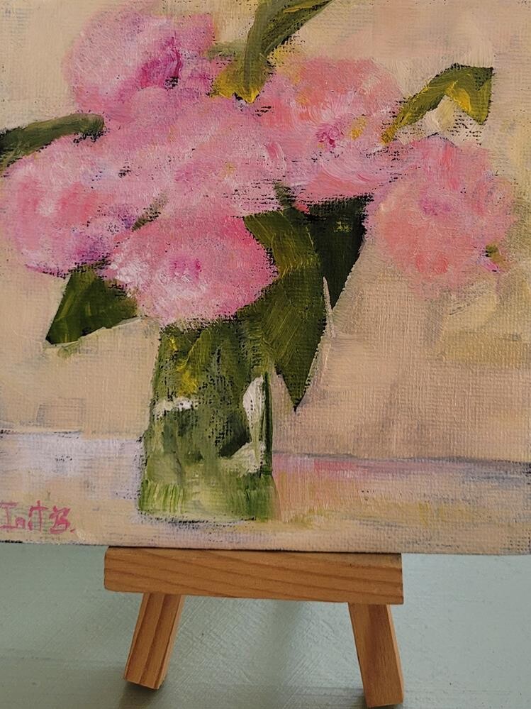 Original oil on 5x5 black gesso canvas panel with display easel. A quick painting from left over paints.Always fun. The colors may slightly vary due to a digital camera's result and depending on your monitor. Original oil on 5x5 black gesso canvas panel with display easel. A quick painting from left over paints.Always fun. The colors may slightly vary due to a digital camera's result and depending on your monitor. |