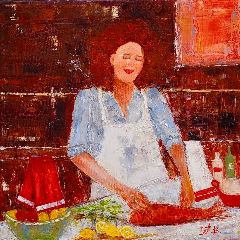 Original oil/pallet knife on 12x12 wrap around canvas. The colors may slightly vary due to a digital camera's result and depending on your monitor.