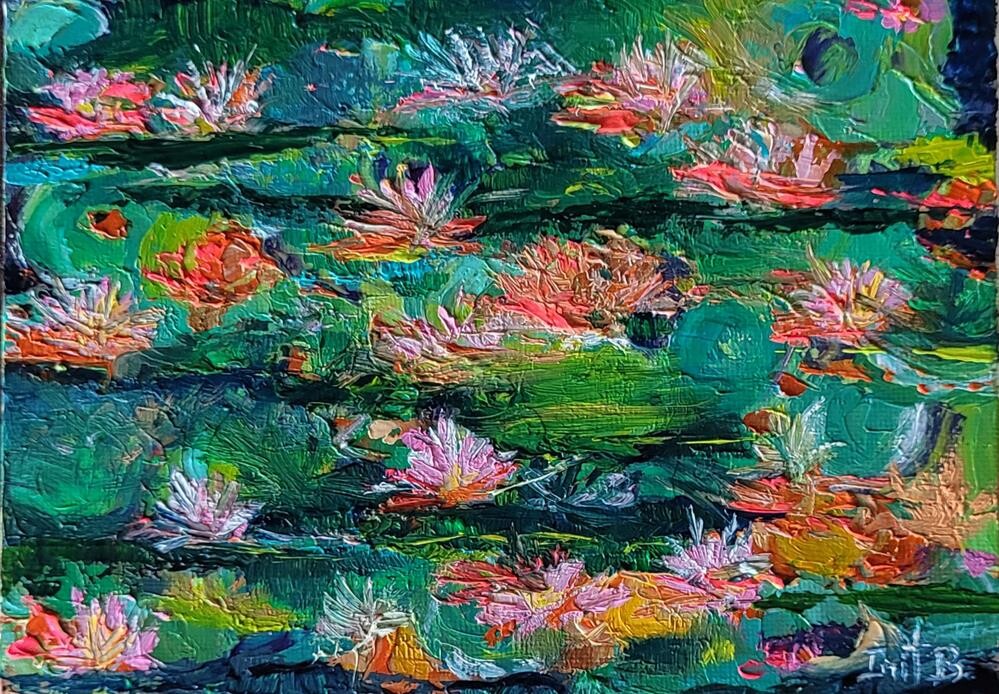 Original oil/pallet knife on 5x7 canvas panel with small display easel. The colors may slightly vary due to a digital camera's result and depending on your monitor. Original oil/pallet knife on 5x7 canvas panel with small display easel. The colors may slightly vary due to a digital camera's result and depending on your monitor. |