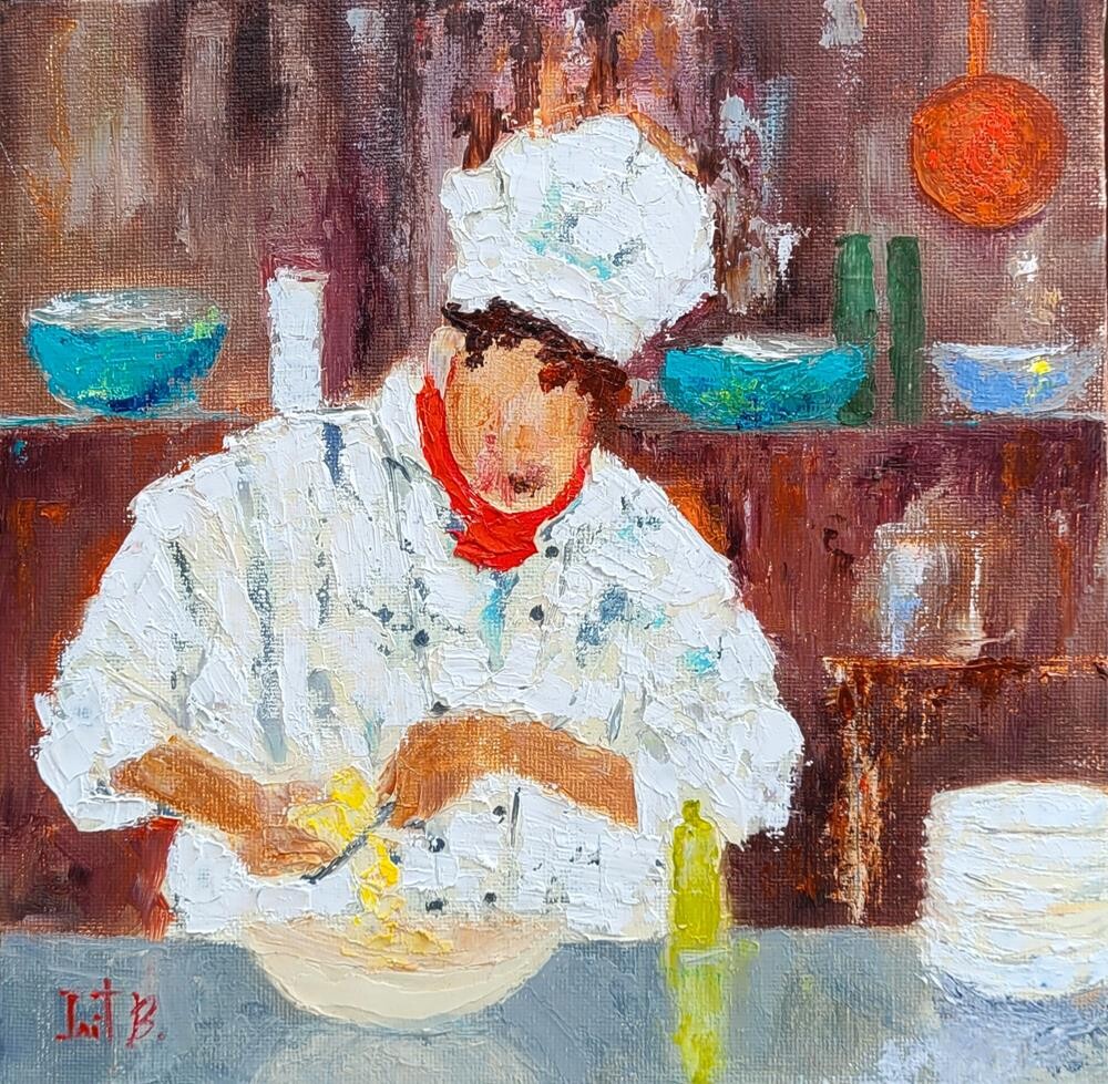 Original oil/pallet knife on 8x8 canvas panel. The colors may slightly vary due to a digital camera's result and depending on your monitor.