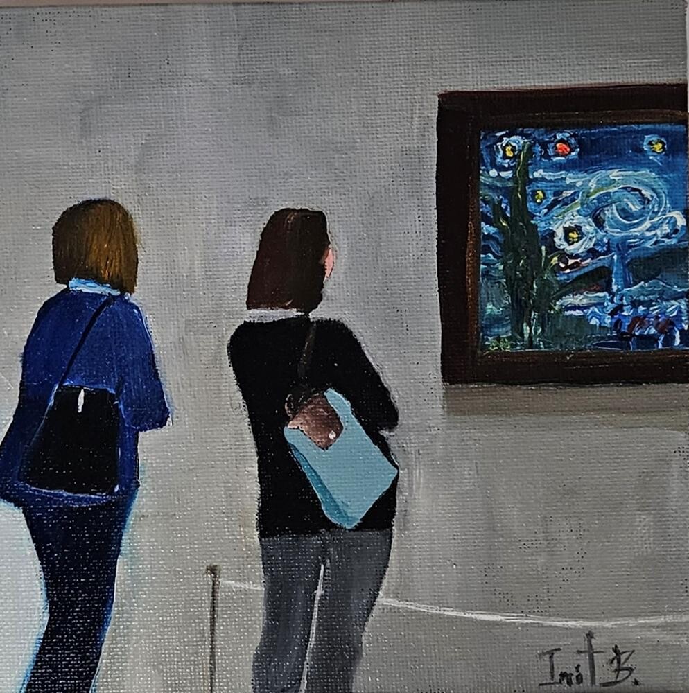 The painting "Starry Night" was created in mid-June 1889, inspired by the view from Van Gogh’s bedroom window at the Saint-Paul-de-Mausole monastery. Original oil on 6x6 canvas panel. The colors may slightly vary due to a digital camera's result and depending on your monitor.