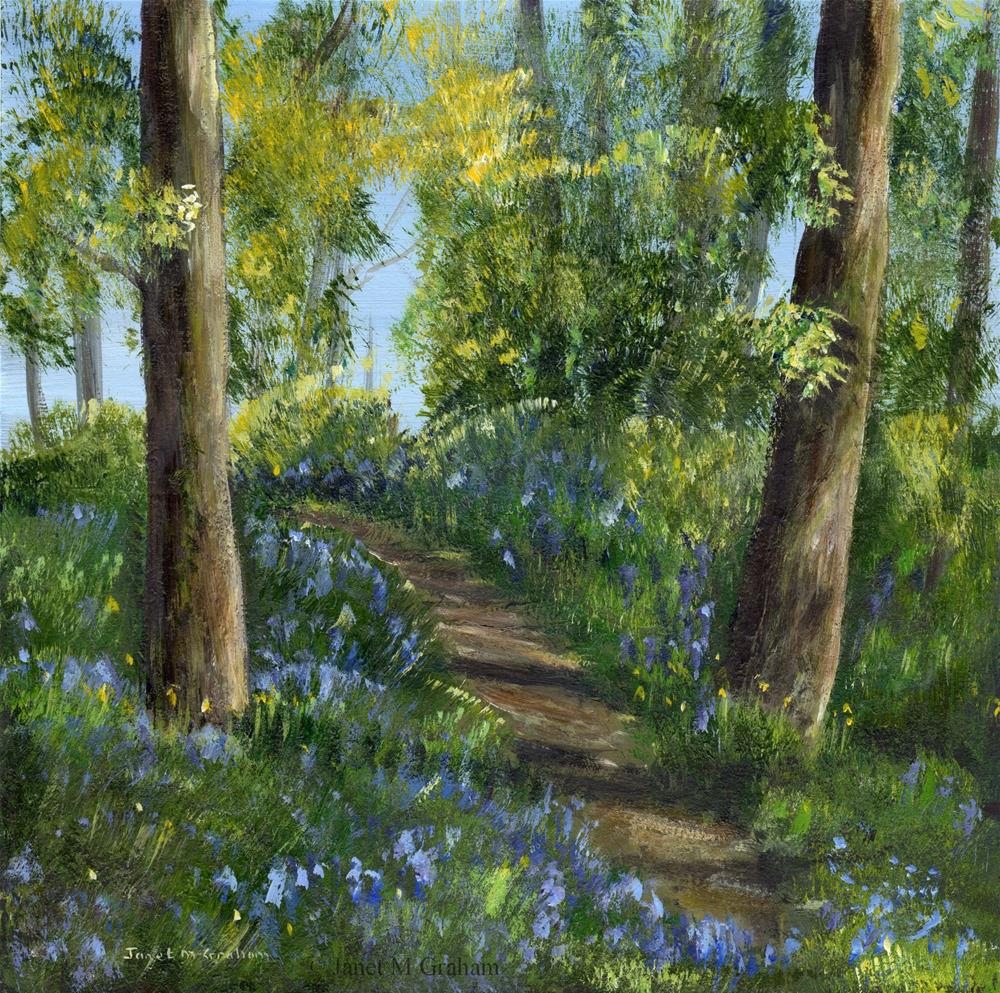 Bluebell Woods 2 is painted on Colourfix 500gsm Suede Paper using artist quality acrylic paints, the painting measures 8 x 8 inches (20.3 cm x 20.3 cm). The painting is unframed/unmounted.