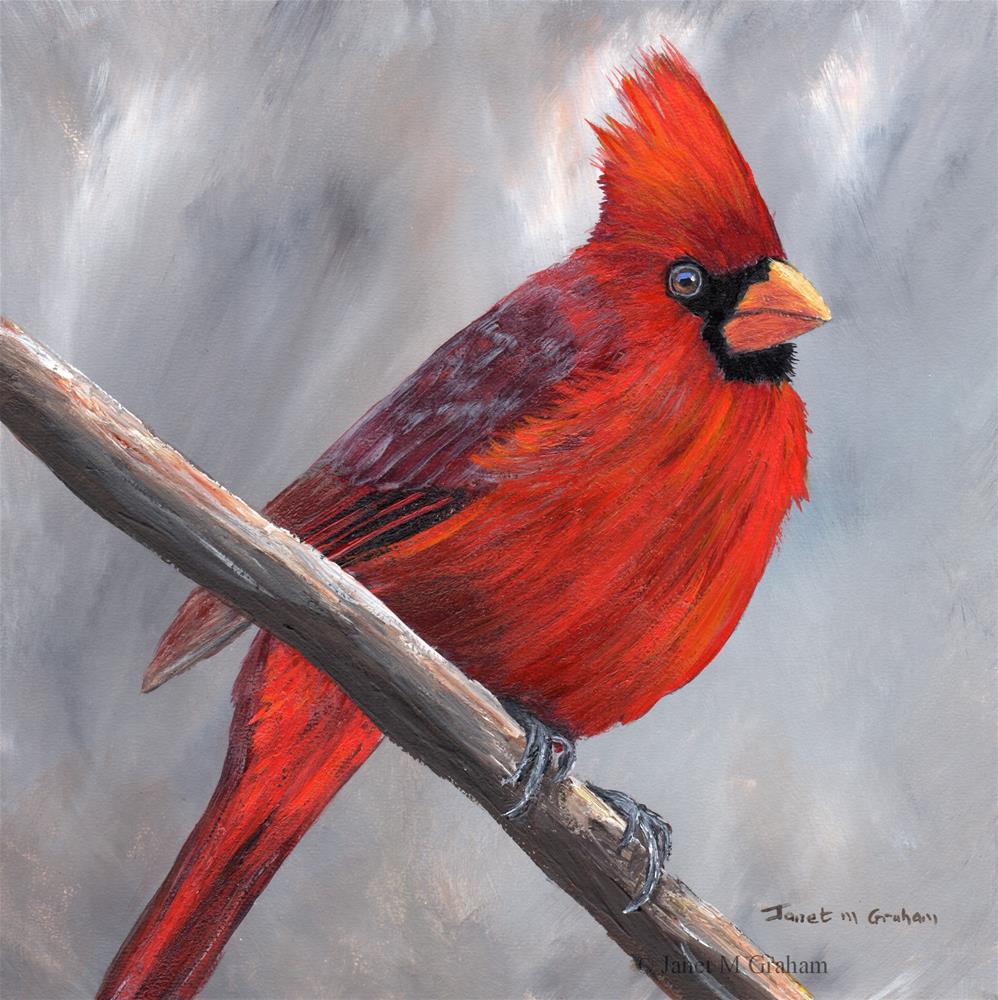 Northern Cardinal is painted on Colourfix 340gsm Smooth Paper using artist quality acrylic paints, the painting measures 8 x 8 inches (20.3 cm x 20.3 cm). The painting is unframed/unmounted. Many thanks to Alan Schmierer for the reference photo.