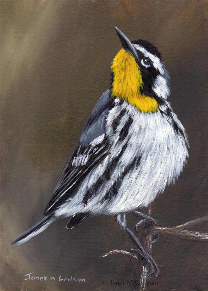 Yellow Throated Warbler No 2 is painted on Colourfix 340gsm Smooth Paper using artist quality acrylic paints, the painting measures 5 x 7 inches (12.7 cm x 17.8 cm). The painting is unframed/unmounted. Many thanks to Bettina Arrigoni for the reference photo.