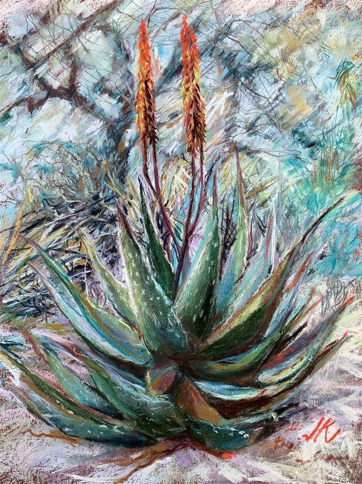 This plant is found at the Desert Botanical Garden in Phoenix, Arizona. I'll add the the botanic information as soon as I can, probably after a trip to the Garden itself. I was attracted by the red-yellow blooms supported on purple stalks, cradled in a wreath of green-aqua-magenta-alizarin foliage. What's not to love?