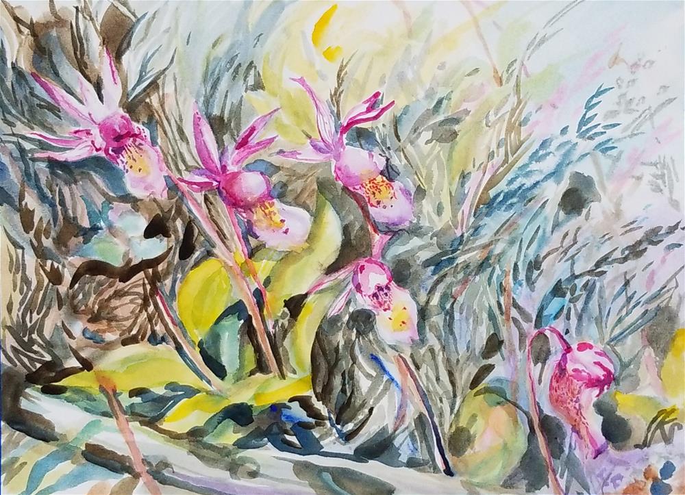 Fairy Slippers, Calypso bulbosa are orchids, somewhat rare and a delight to find. These flowers were emerging along the Rainbow Trail in southeast Colorado.