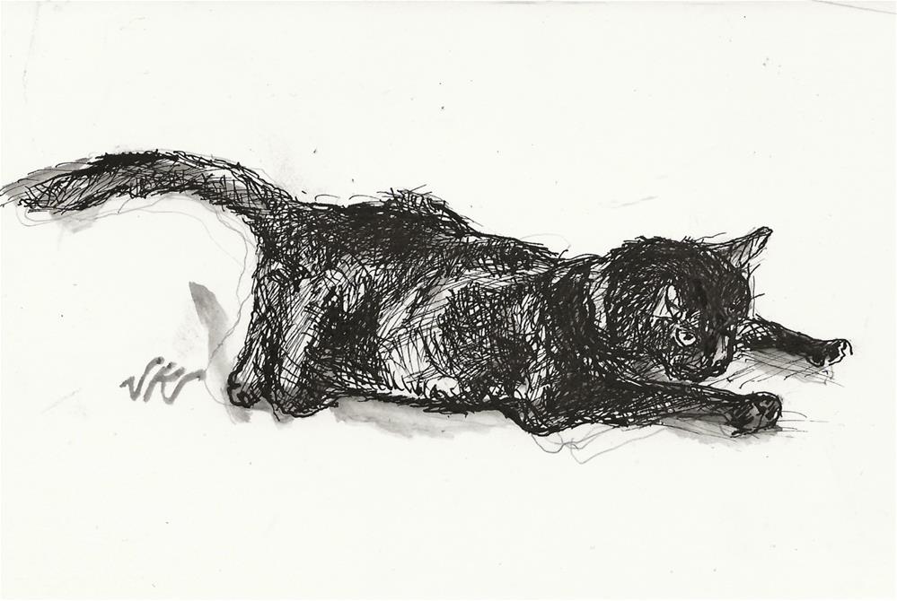 http://jeankruegerfineart.comthe first painting in The Daily Cat Series on which I used a dip pen with India ink. Previously I've always used a brush, usually a calligraphy brush. The pen is a bit more tedious and I'm rusty with the technique. I plan to continue using the pen with the goal of becoming more fluid and intuitive. Do you like this new look for The Daily Cat? Tell me about it.