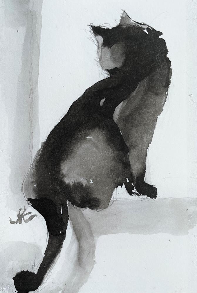 Mixed India ink and graphite on 140# Hot Press watercolor paper