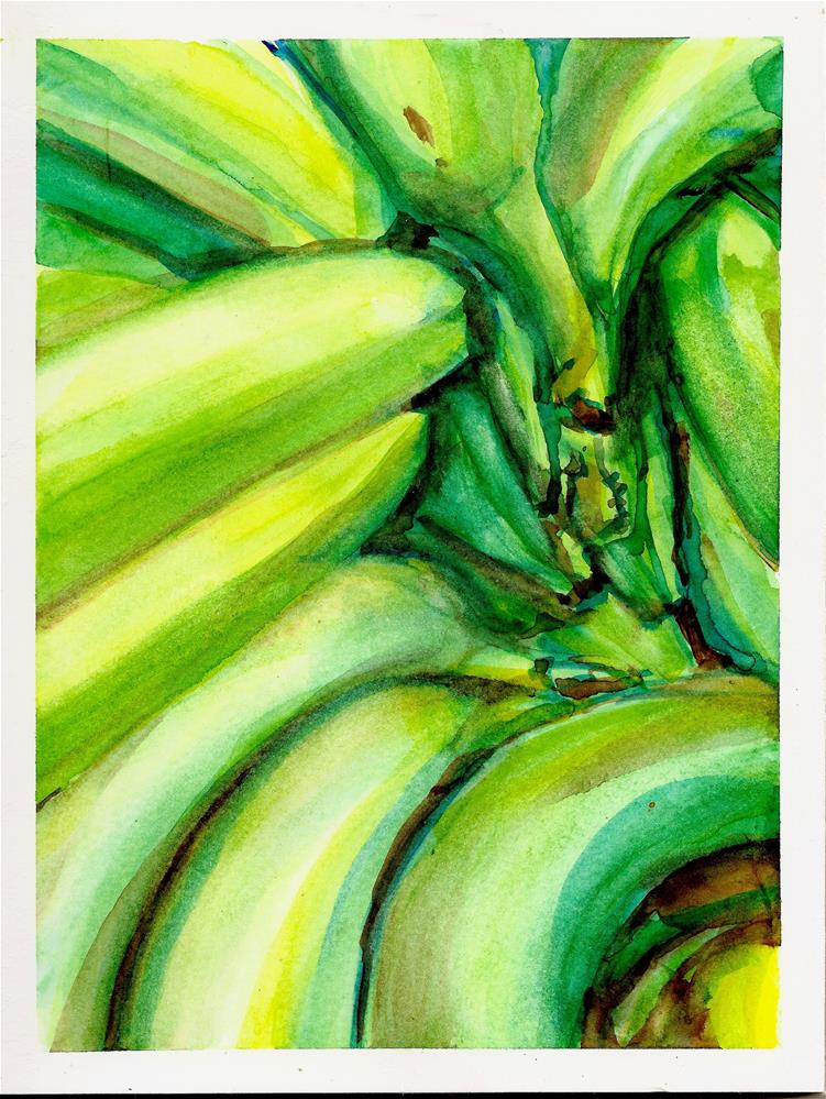 The painting comes from a detail of a photo taken at Trader Joes. I like best to paint my still lives at the true scale of the subject; I was drawn to the vortex created by theie emarald unripness. Price inclues shipping.