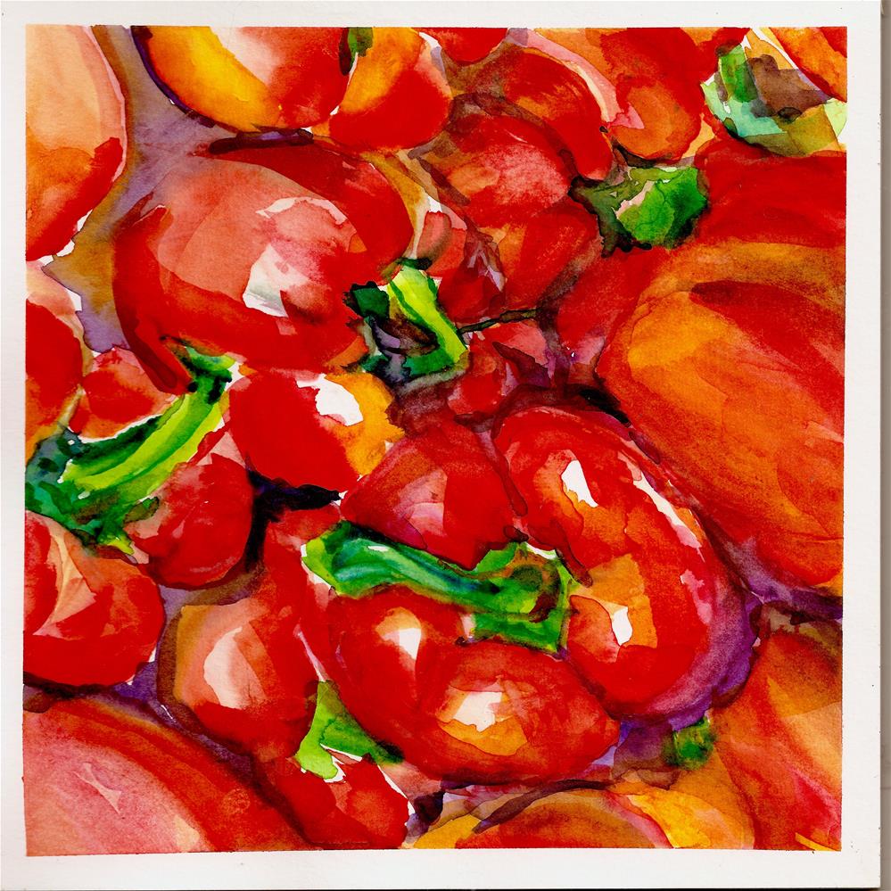 A study in poppin' reds and sulky purple, reflected light and deep shadow, taken from my favorite source, the produce aisle in an upscale, well-lit market. Shipping is free.