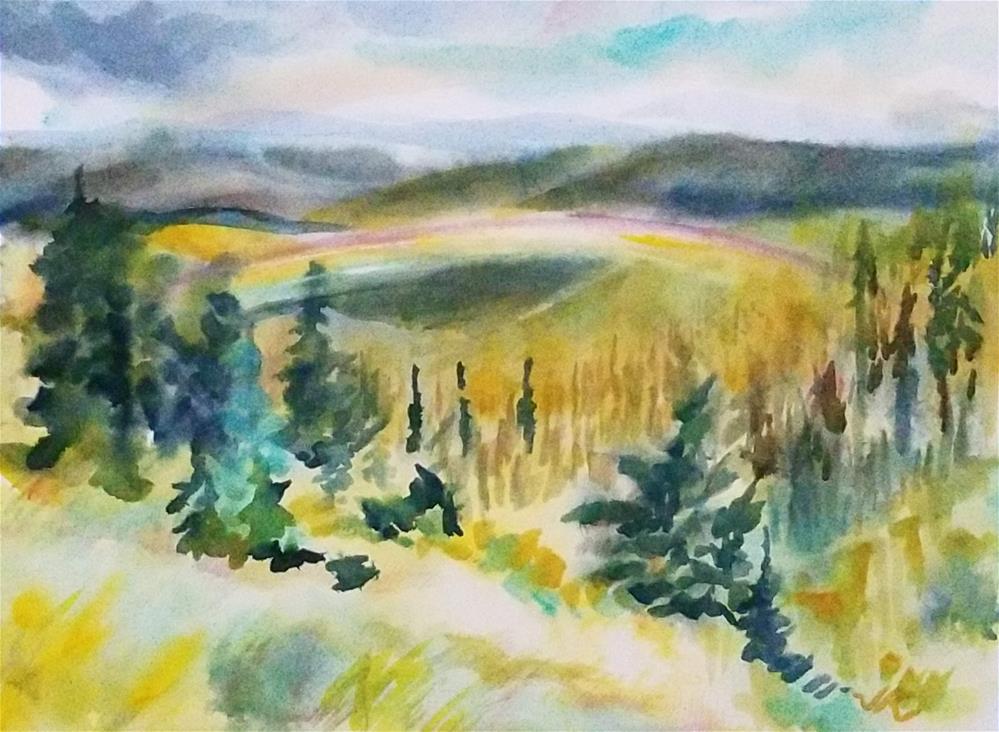 Media: Artists pigments on 140# hot press watercolor paper, masked border