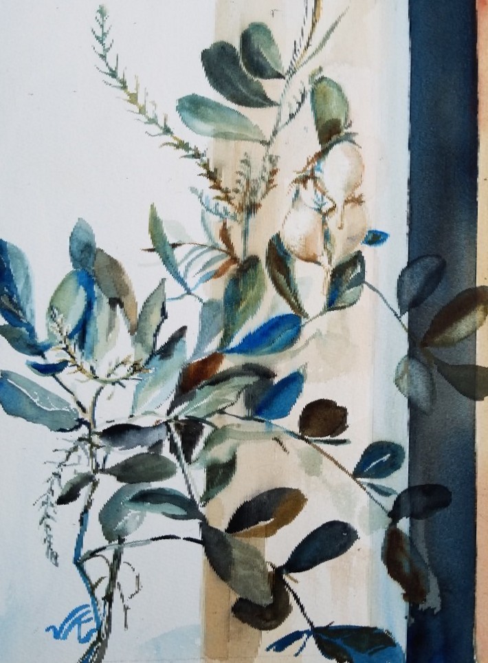This plant grows in a pot by the entrance to the Desert Botanical Garden in Phoenix, AZ. I have to find out its name. I paint it for its shape and crisp silhouette.