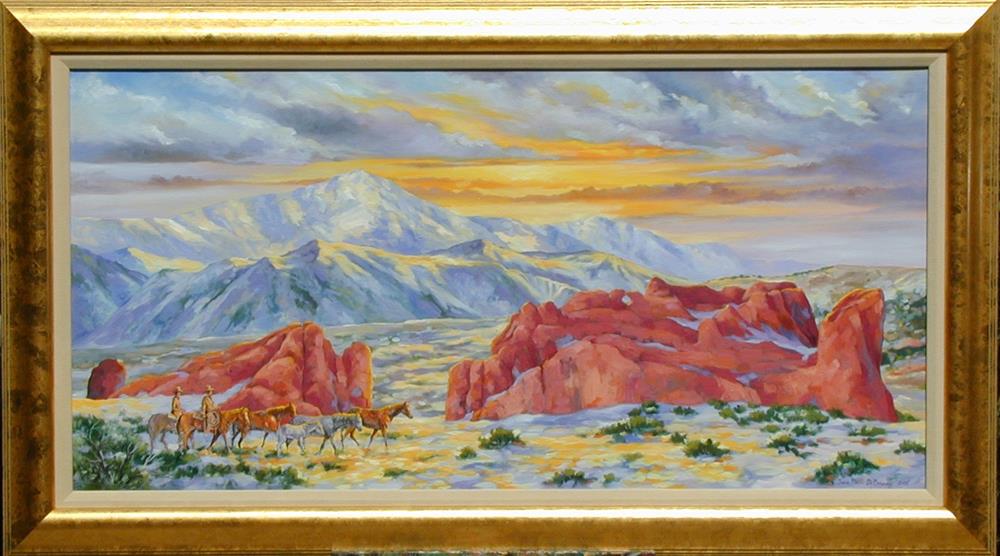 Large panorama of Pike's Peak and the Garden of the Gods in Colorado Springs.