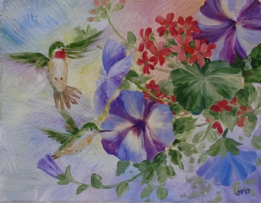 Media: Oil Hanging basket with Hummers