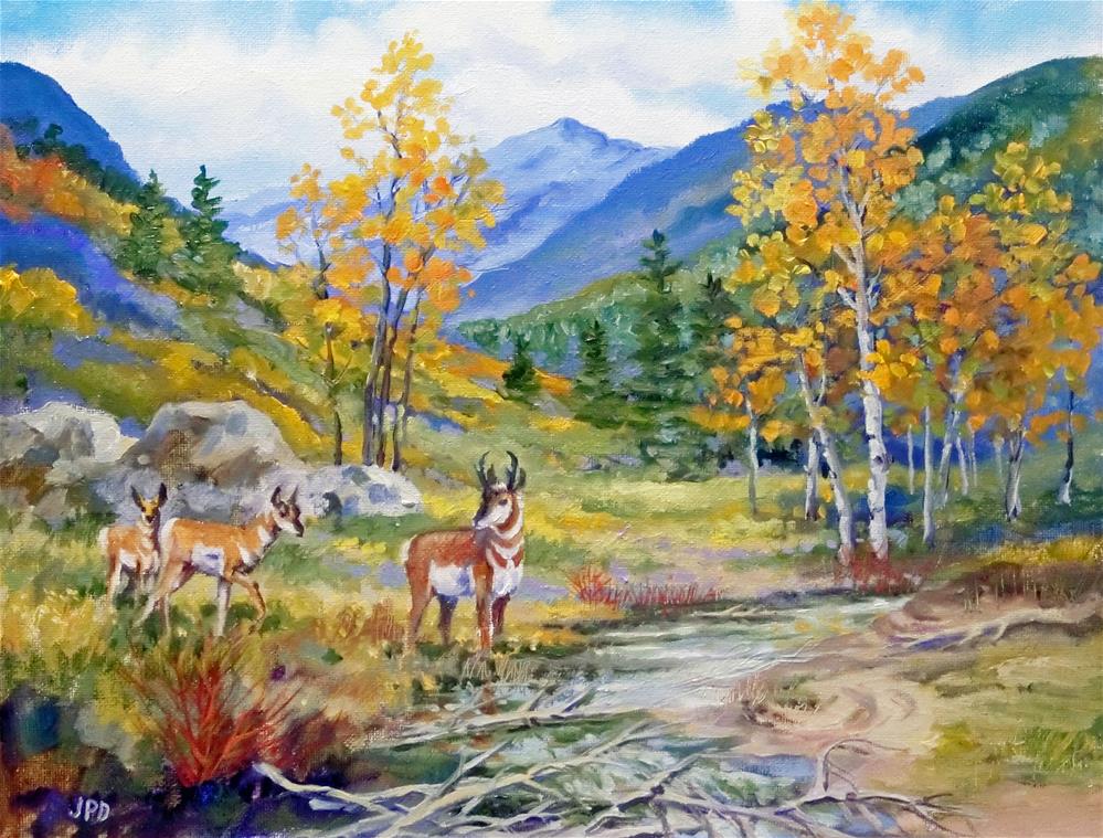 Pronghorn group approaching water stream in the fall. Pronghorn group approaching water stream in the fall. |