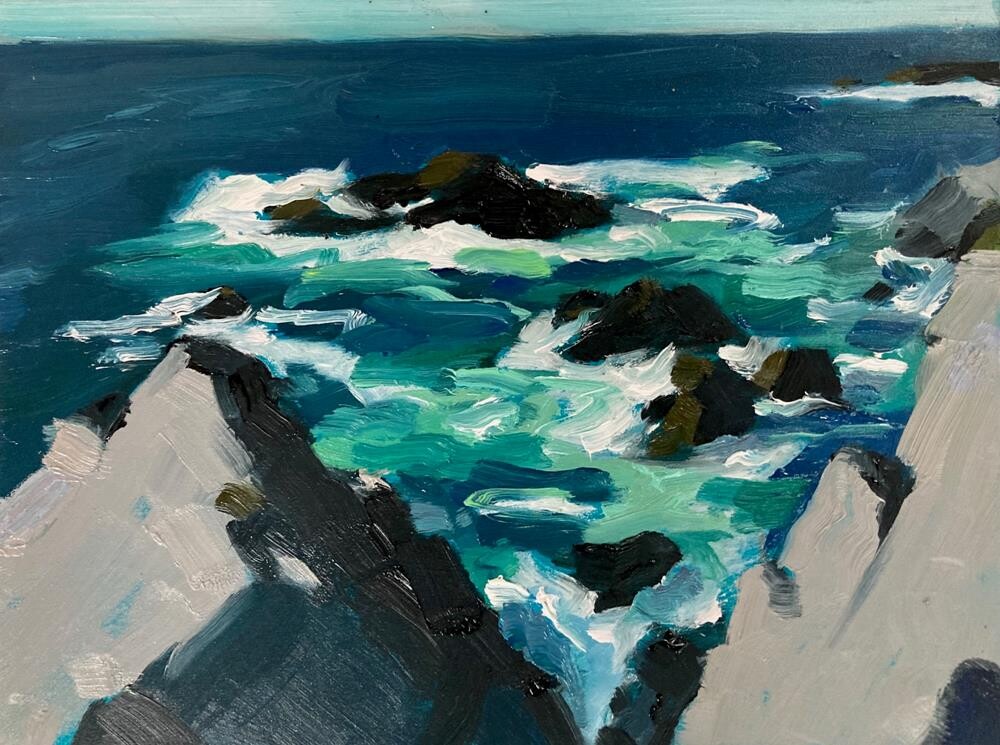I just pulled some landscapes out for a local customer, and as I was about to put them (minus one) back, I just thought I'd throw it out there to all my locals--let me know if you'd like to come by tomorrow or Saturday to do a little holiday shopping / window shopping! And if you're not local, this one is available and can be shipped: Monhegan Island No. 2, painted en plein air, atop my little rocky perch. I just pulled some landscapes out for a local customer, and as I was about to put them (minus one) back, I just thought I'd throw it out there to all my locals--let me know if you'd like to come by tomorrow or Saturday to do a little holiday shopping / window shopping! And if you're not local, this one is available and can be shipped: Monhegan Island No. 2, painted en plein air, atop my little rocky perch. |