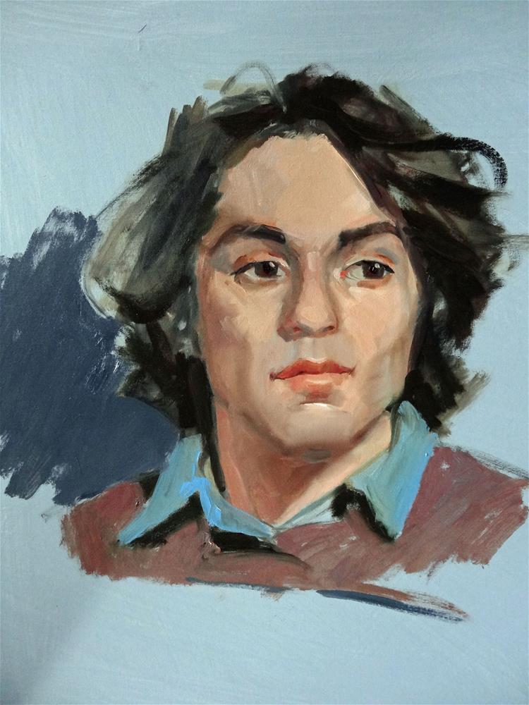 This young man is home scholled and created his own goals. He lives in the northern part of our county (which is 100 miles long) His transportation to our art group is hooping a ride with his Dad to his place of work, then hooping public transportation. He is a welcome addition and incredibly smart and respectful. I hope that comes thru in the painting. Another 3 hour piece.