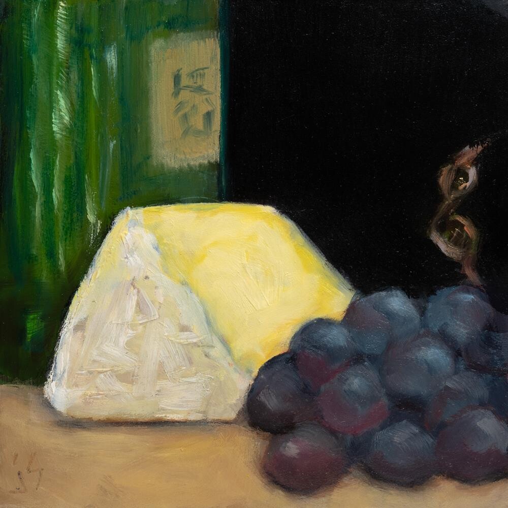 Interesting angle, zoomed in! Ready to go with a bottle of wine, cheese and some grapes.