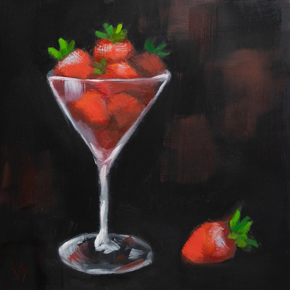 How fancy to serve strawberries in a martini glass whether for breakfast or dinner. Bet there's some sweet cream not far away.