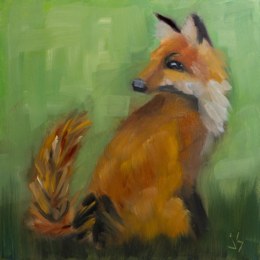 Sweet little fox probably scared by his own tail! A joy to paint.