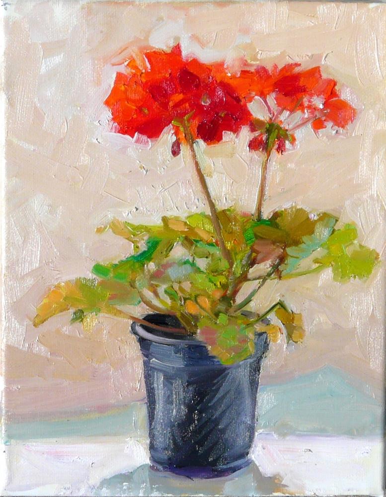 Here is today's painting of my deck geranium plant. I worked a little more on yesterday's "Skipping Stones with Dad" See my blog.