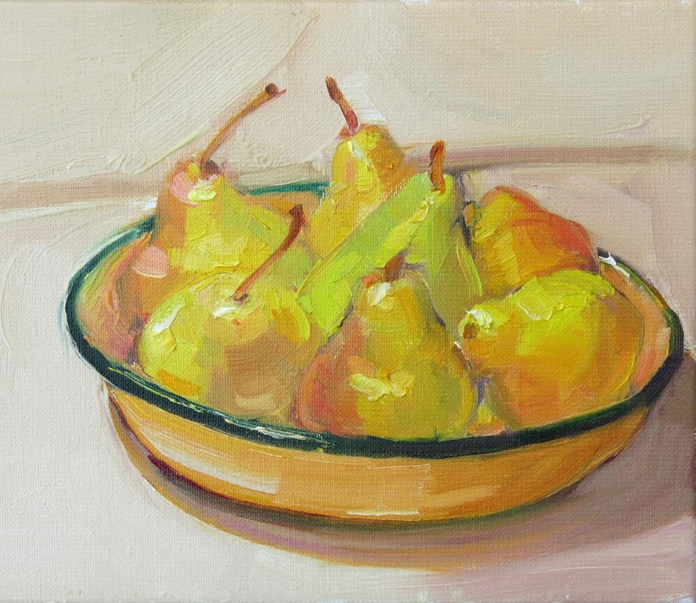 Sweet Bartlett peas in a yellow ceramic bowl.