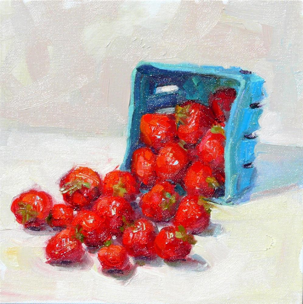 I saw these strawberries this morning at the co-op and I thought that I had to paint them. They smell so good.
