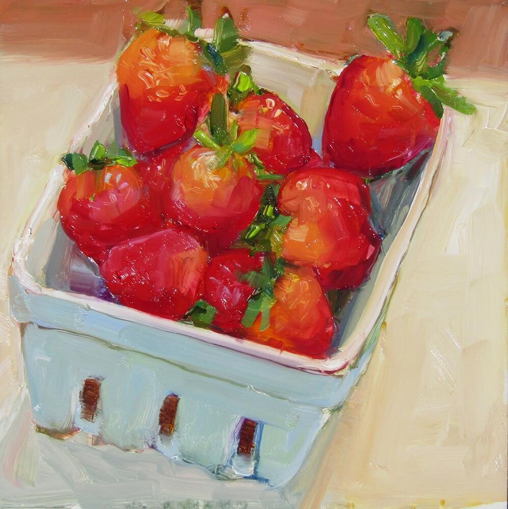 Fresh strawberries in a ceramic box.