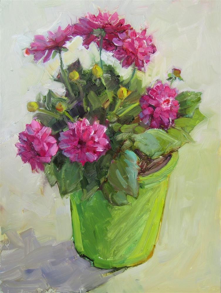 A painting of a very pretty happy Dahlia plant.
