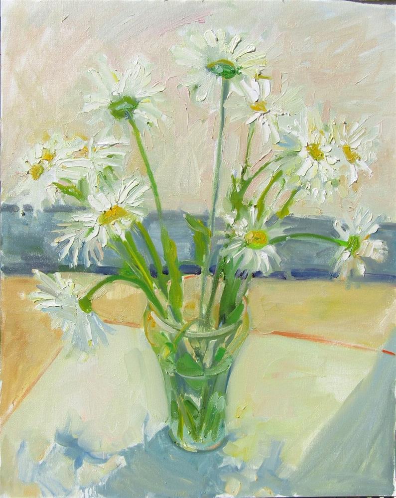 I placed this Daisy bouquet in the sunlight. The sunlight moved a lot as I painted it. Maybe I'll paint smaller next time.