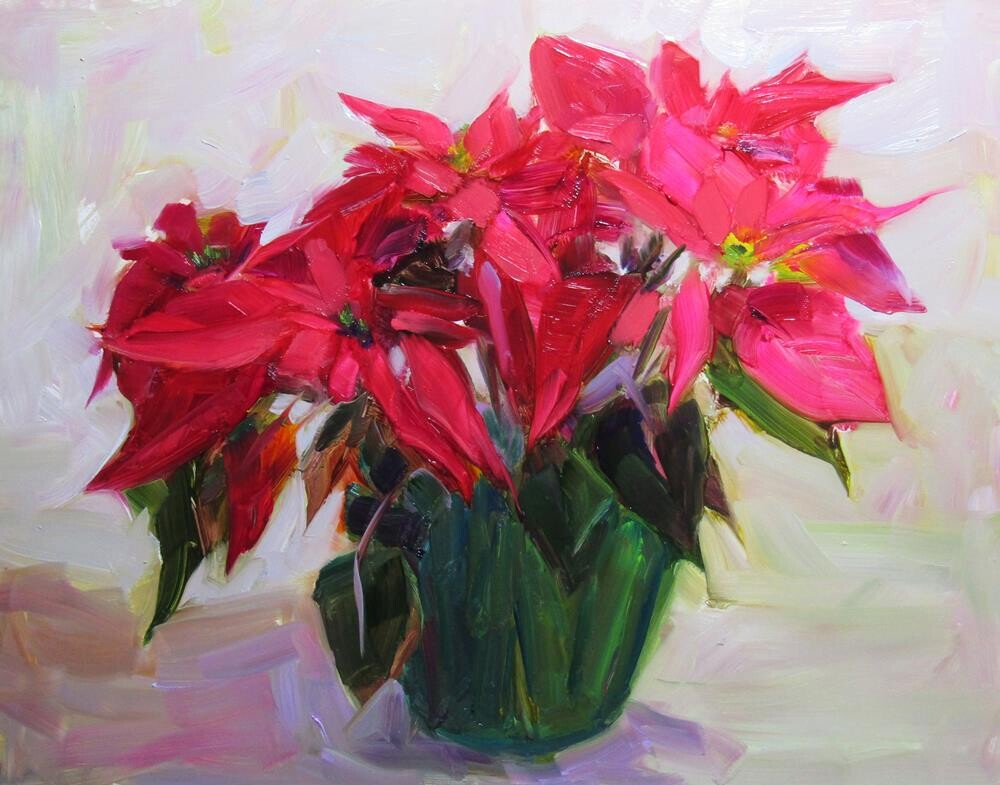 Another painting of a pretty red Poinsettia.