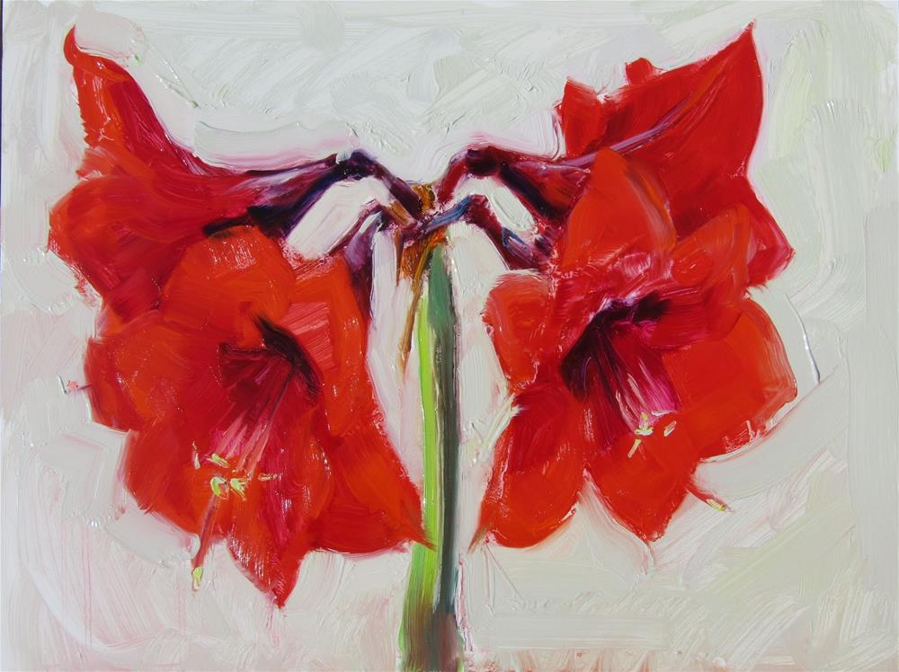 Same Amaryllis plant but painted from another view.