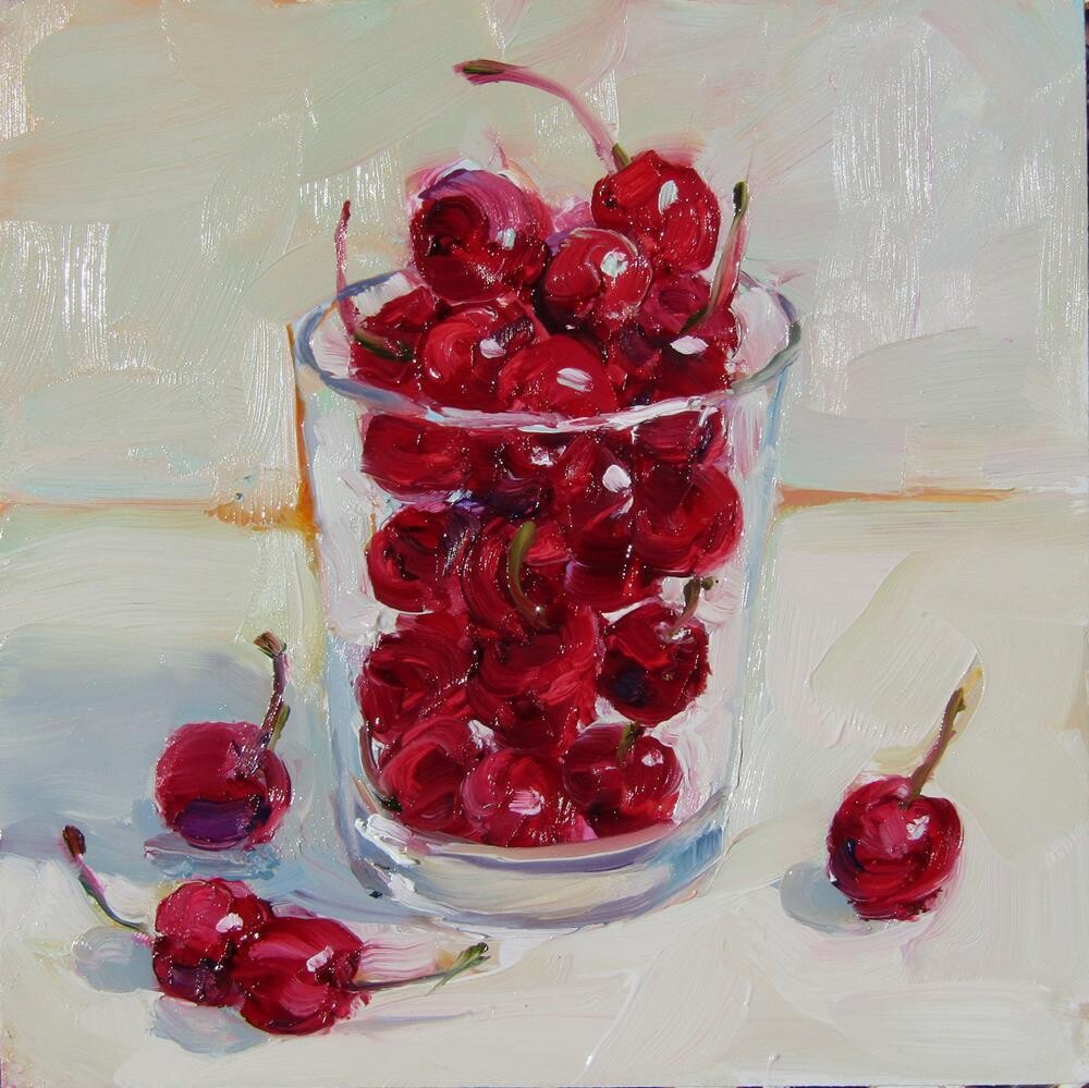 I was inspired by a painting of Cherries by Denis Krupchatnikov that was on Facebook.His painting was more dynamic.