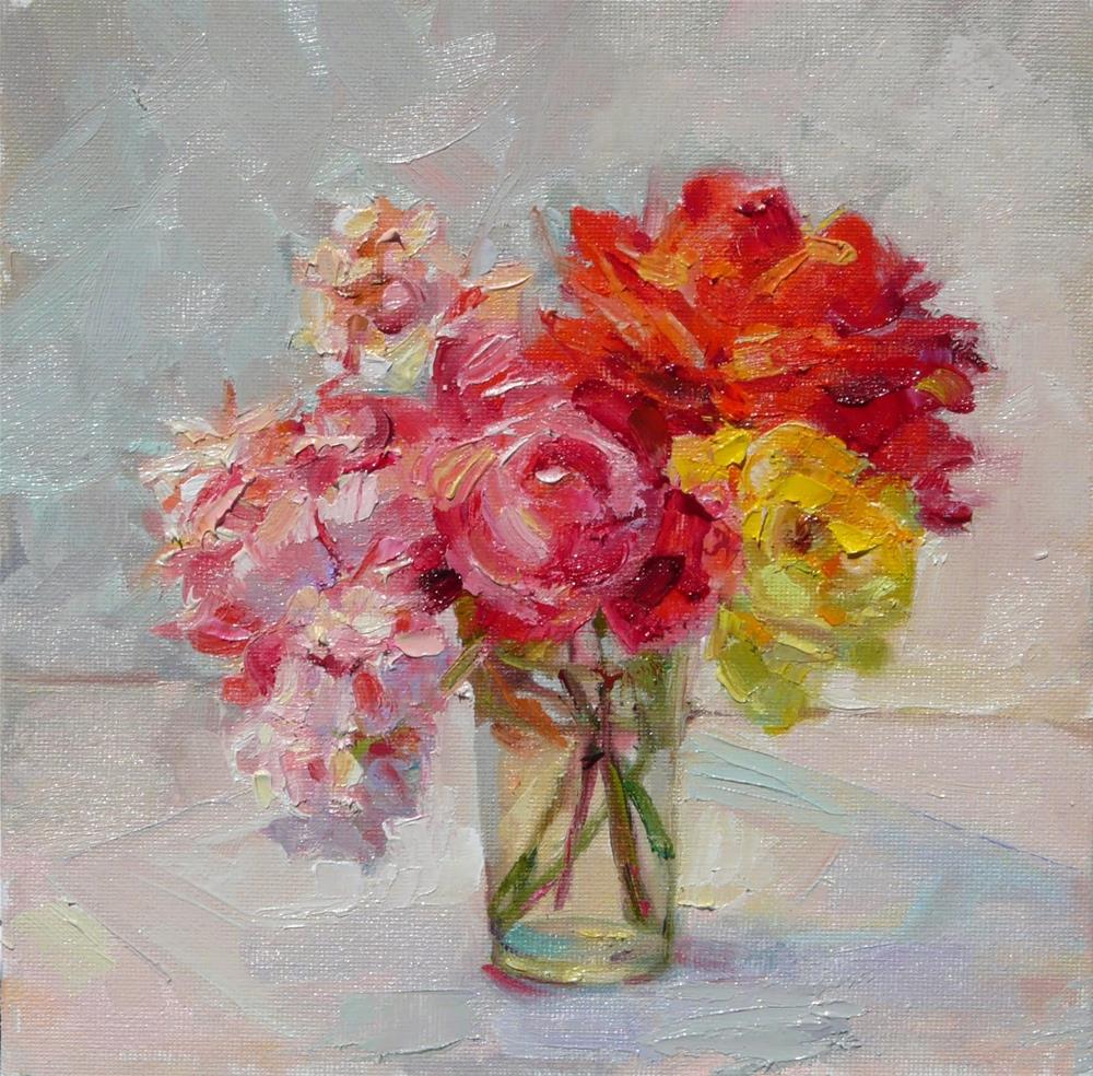 A glass of pretty roses.