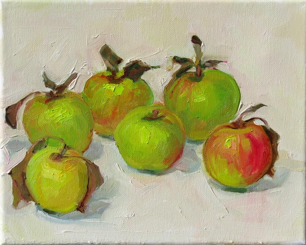 One of my neighbors gave me a very big box of her apples. So they get painted by me.