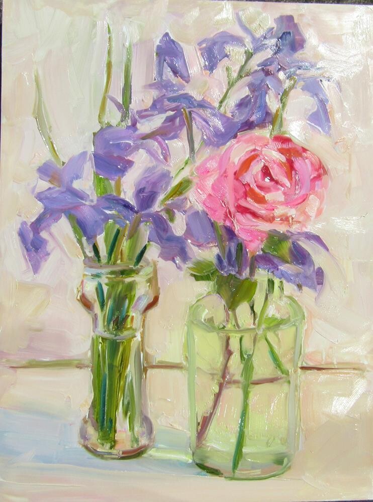 A pink rose and iris from my garden.