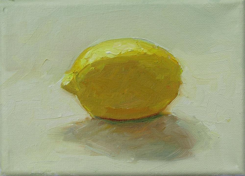 I put this lemon on the table when I walked into my studio and liked the way the top had the outside light on it while the rest of the lemon was in shadow. So snow is all gone and the studio.