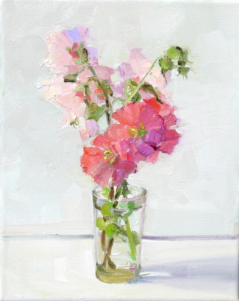 I have large hollyhock plants in my garden. I thought I would put up both paintings on my blog. See which one you like better.