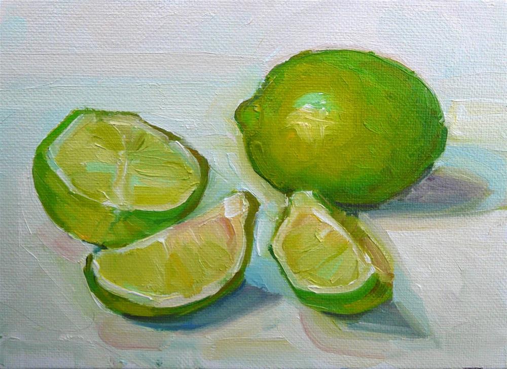 Today's painting is of the limes that I bought for another project. I had fun trying to get the colors right on the slices.
